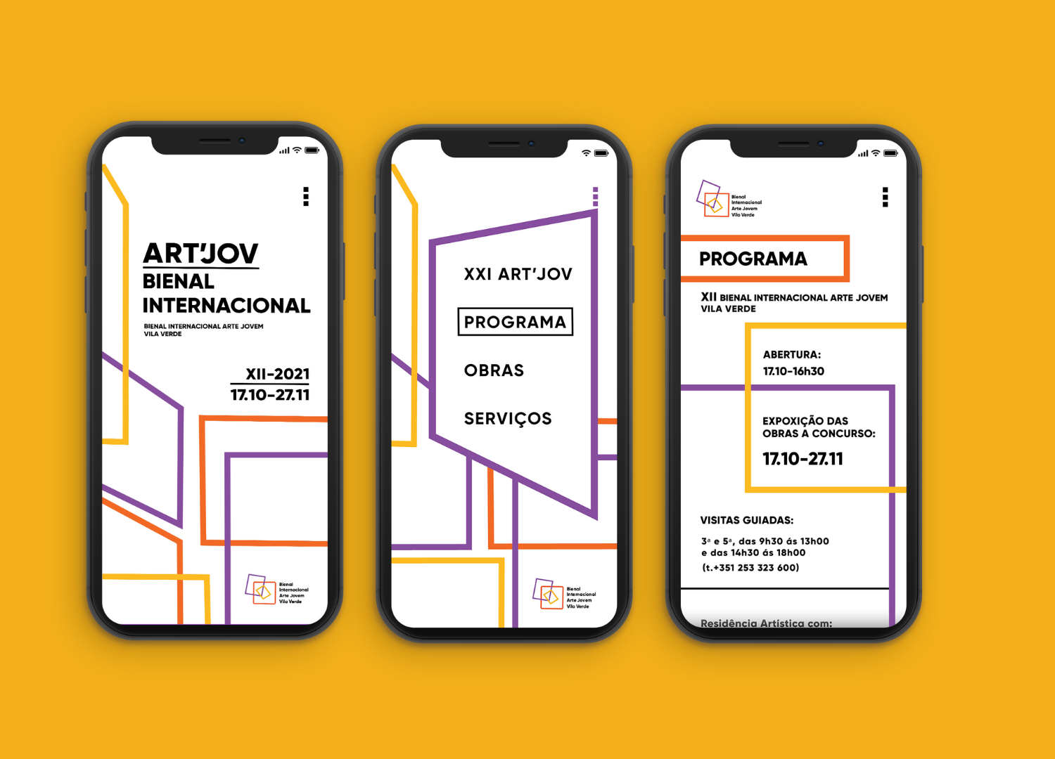 For the "ART'JOV" Vila Verde International Youth Art Biennial, I undertook the redesign of its coordinated visual identity and communication materials, creating a fresh and dynamic presence for this vibrant cultural event.