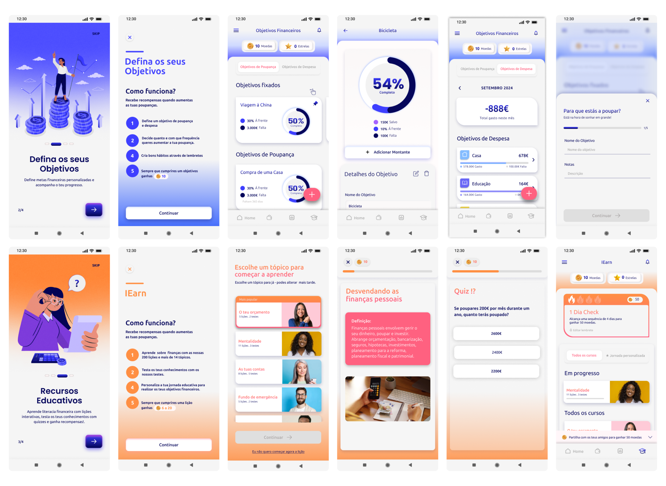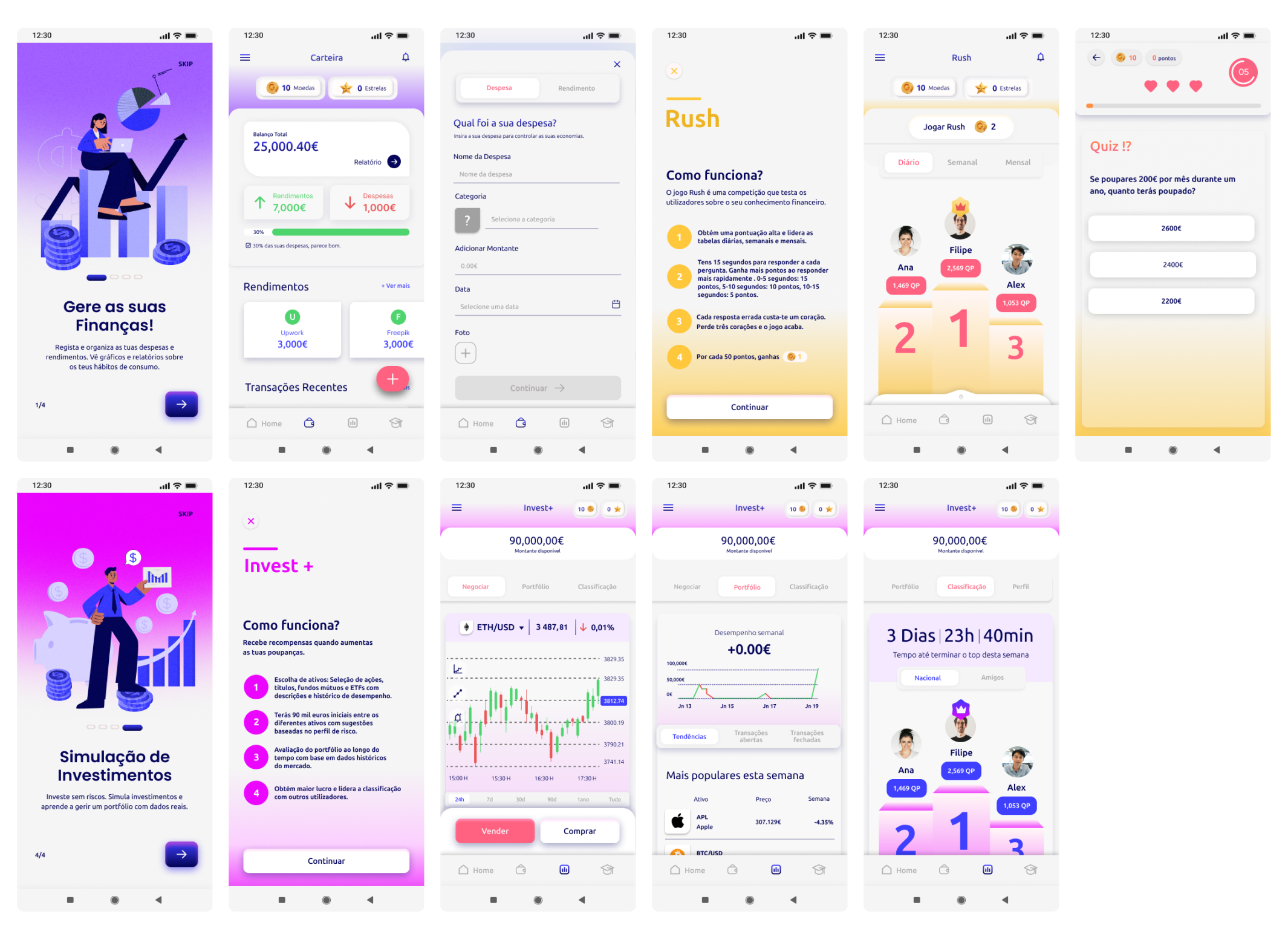 This project, completed as part of my Master’s in Digital Design, focuses on addressing the low financial literacy levels among young adults in Portugal. It aims to empower users by providing a mobile application that combines financial education with gamification techniques, making the learning process engaging, accessible, and enjoyable. The app is designed to teach essential financial concepts such as budgeting, saving, credit management, and investing while promoting long-term behavioral changes toward responsible financial practices.